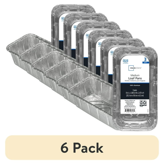- Convenient Packaging: This offering includes a 6-pack of Mainstays Aluminum Foil 2 lb. Loaf Pans, with each package containing three disposable pans for a total of eighteen pans.