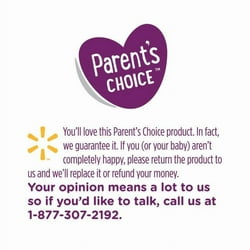Since 1998, Walmart's Parent's Choice has been trusted by parents across the country to provide quality, affordable baby products. We offer a wide range of products including diapers, wipes, toiletries, baby food, formula and baby feeding products. With a quality guarantee to back up all its baby, toddler, infant and newborn products, Parent's Choice takes care of your little one's needs for less.