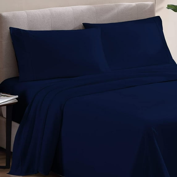 Hero image 0 of 600-TC Egyptian Cotton RV Camper - RV Sheets - 4 Piece Bed Set for Campers RV Short Queen 60" x 75" Sheets for RV Short Queen Sheet Set 6" Deep Fitted Sheet Luxury Soft (Navy Blue), 0 of 6