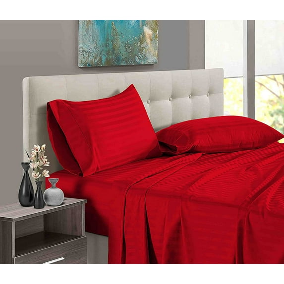 Hero image 0 of 600 Thread Count 100% Long Staple Egyptian Cotton Soft Combed, 4 Piece Sheets Set, Smooth & Soft Sateen Weave, Luxury Hotel Collection Bedding, Deep Pocket Fitted (King, Blood Red Stripe), 0 of 1