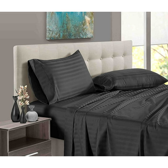 Hero image 0 of 600 Thread Count 100% Long Staple Egyptian Cotton Soft Combed, 4 Piece Sheets Set, Smooth & Soft Sateen Weave, Luxury Hotel Collection Bedding, Deep Pocket Fitted (Twin XL, Dark Grey Stripe), 0 of 1