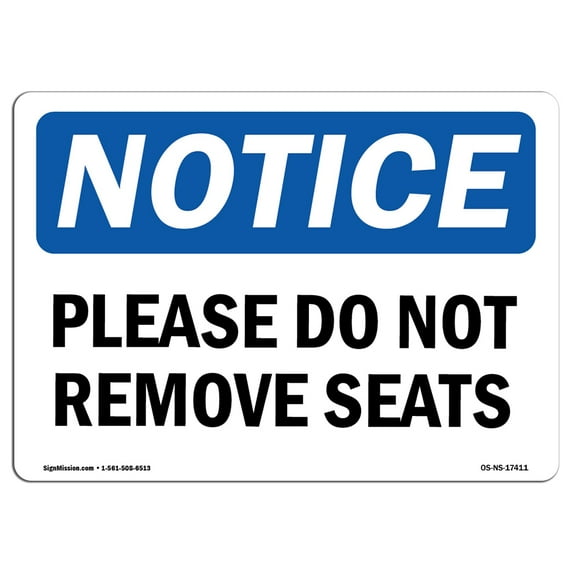 Hero image 0 of OSHA Notice Sign - Please Do Not Reserve Seats | Aluminum Sign | Protect Your Business, Construction Site, Warehouse & Shop Area | Made in the USA, 0 of 6