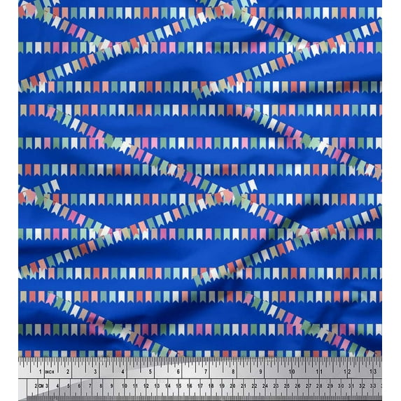 Hero image 0 of Soimoi Blue Japan Crepe Satin Fabric Celebration Flags Party Print Sewing Fabric Yard 42 Inch Wide, 0 of 3