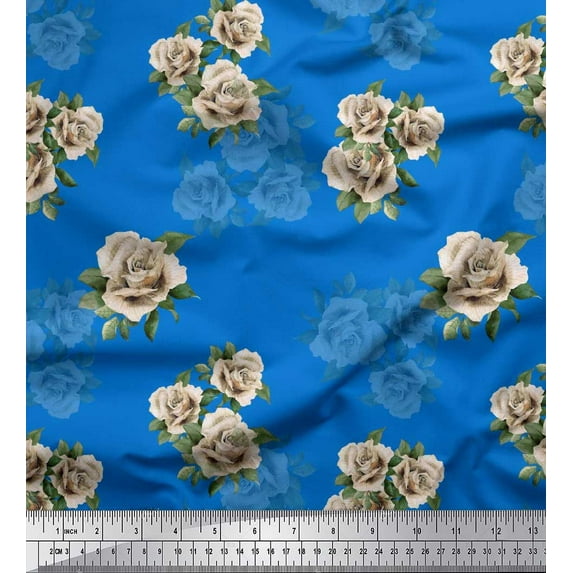 Soimoi Rayon Fabric Leaves & Alba Rose Floral Print Fabric by Yard 42 Inch Wide