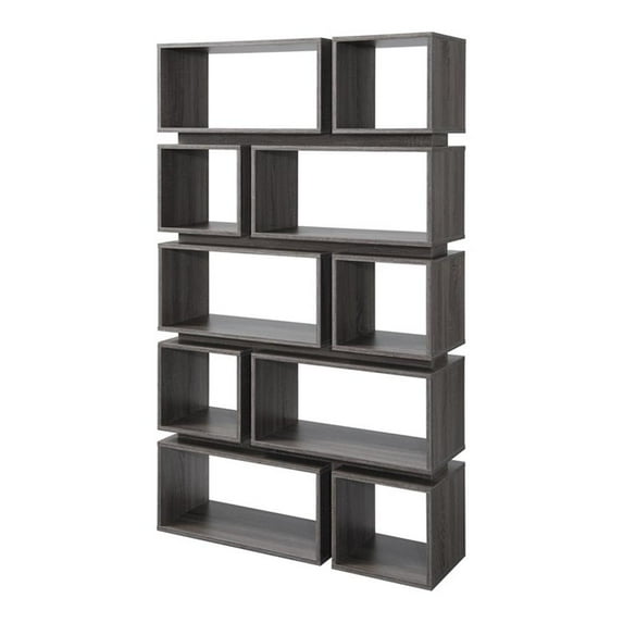 Hero image 0 of Bowery Hill Geometric Wood Bookcase in Distressed Gray, 0 of 7