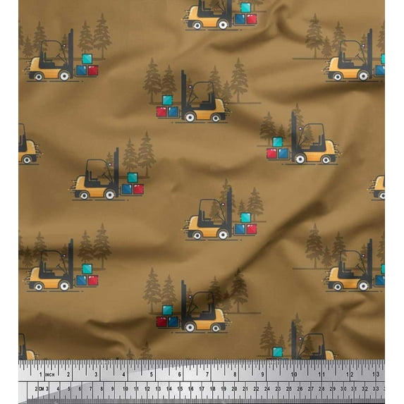 Hero image 0 of Soimoi Brown Crepe Silk Fabric Tree & Forklift Truck Transport Printed Craft Fabric by the Yard 42 Inch Wide, 0 of 1