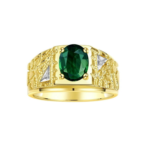 Hero image 0 of RYLOS Men's Rings 14K Yellow Gold Designer Nugget Ring Oval 9X7MM Gemstone & Diamonds Green Sapphire Birthstone Rings For Man Size 11, 0 of 6