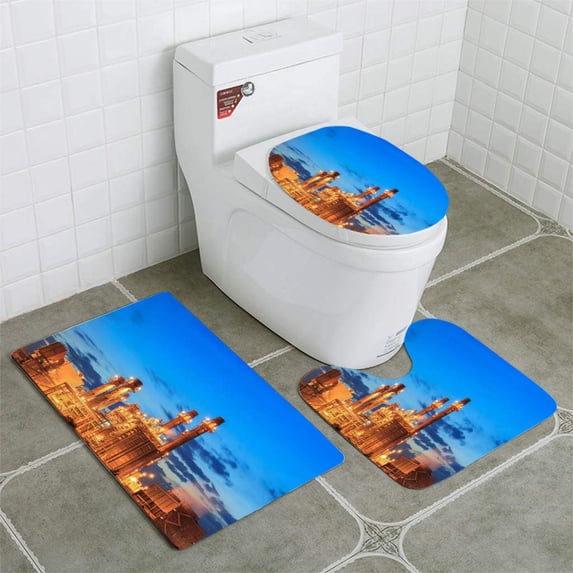 Hero image 0 of PUDMAD Gas Turbine Electric Power Plant 3 Piece Bathroom Rugs Set Bath Rug Contour Mat and Toilet Lid Cover, 0 of 2