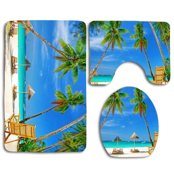 Hero image 0 of PUDMAD Beach Palm and Chair 3 Piece Bathroom Rugs Set Bath Rug Contour Mat and Toilet Lid Cover, 0 of 2