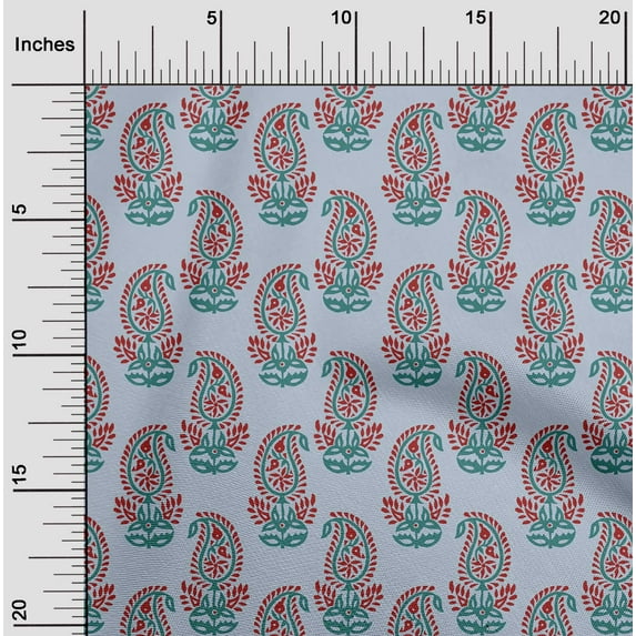 oneOone Cotton Poplin Light Grayish Blue Fabric Paisley Block Craft Projects Decor Fabric Printed By The Yard 42 Inch Wide