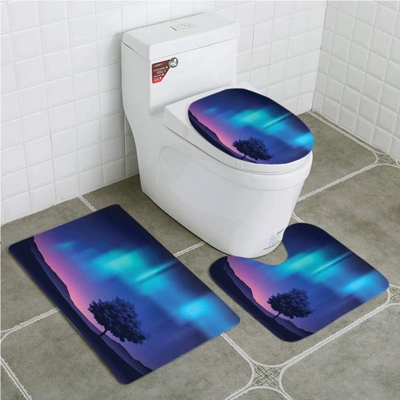 Hero image 0 of PUDMAD Fantasy House Northern Lights A Tree in Arctic Region Magical Rare 3 Piece Bathroom Rugs Set Bath Rug Contour Mat and Toilet Lid Cover, 0 of 2