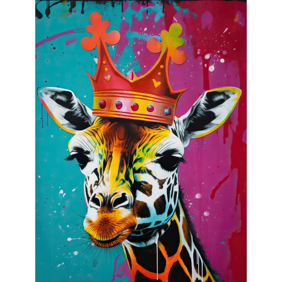 King Queen Giraffe Wearing a Crown Modern Pop Art Large Wall Art Poster Print Thick Paper 18X24 Inch