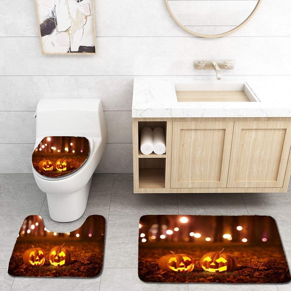 Hero image 0 of PUDMAD Jack o Lantern 3 Piece Bathroom Rugs Set Bath Rug Contour Mat and Toilet Lid Cover, 0 of 2