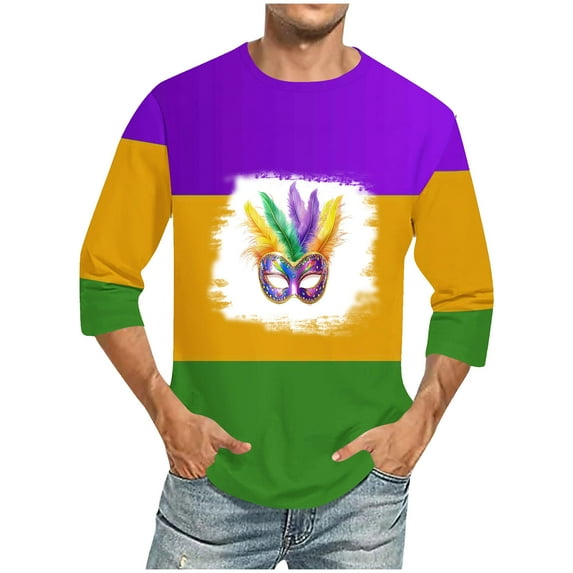 Hero image 0 of Rciityk Mens 3/4 Sleeve Shirts Tops Mardi Gras Plus Size Holiday Party Tees Tops Casual Loose Carnival Prints Crew Neck Blouses, 0 of 3