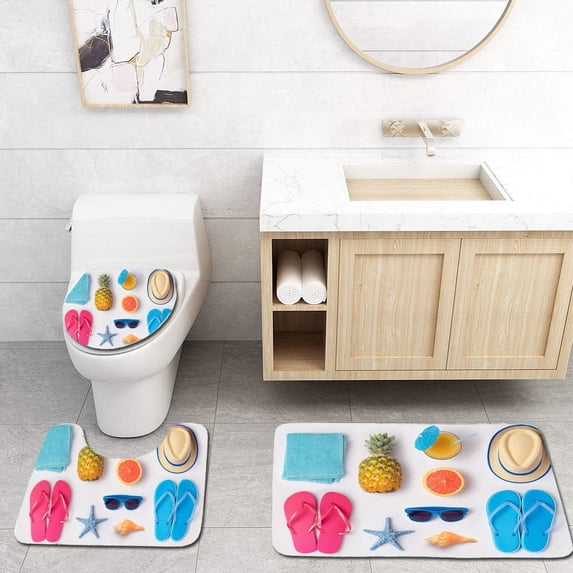 Hero image 0 of PUDMAD Tropical Summer Vacation Concept Pineapple Juice and flip Flops Organized on White 3 Piece Bathroom Rugs Set Bath Rug Contour Mat and Toilet Lid Cover, 0 of 2
