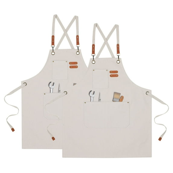 2pcs Adjustable Chef Apron Cross Back Aprons for Kitchen Cooking Art Painting, Beige