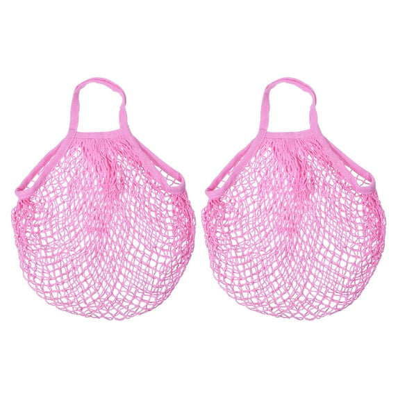 Uxcell Cotton Mesh Bag, 15x13.8" Reusable Mesh Net String Grocery Bags Organizer Pink 2Pcs