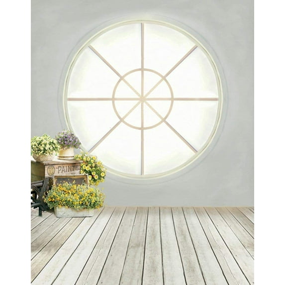Hero image 0 of ABPHOTO Polyester 5x7ft Wooden Floor Flowers Round Window Photography Backdrops Photo Props Studio Background, 0 of 2