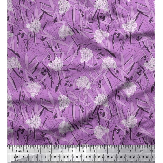 Soimoi Viscose Chiffon Fabric Leaves & Rose Floral Print Sewing Fabric Yard 42 Inch Wide