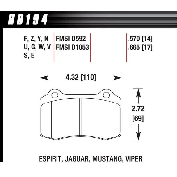 Hawk Performance HB194F.570 Brake Pads - HPS Compound - Rear - Set of 4 Fits select: 2010-2011 CHEVROLET CAMARO SS, 2018 CHRYSLER 300
