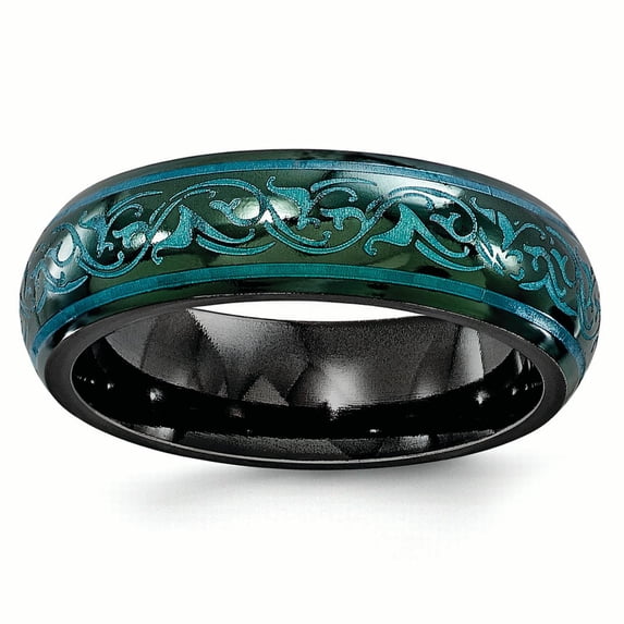 Hero image 0 of Edward Mirell Black Ti Domed Anodized Teal 6mm Band, 0 of 6