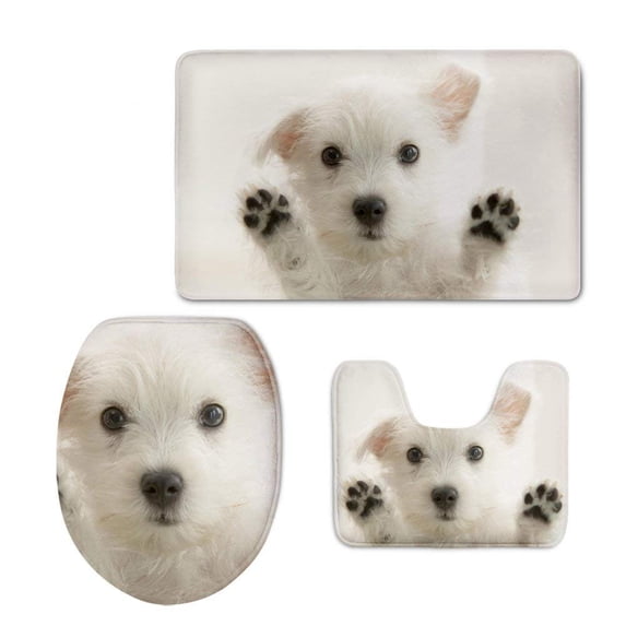 Hero image 0 of PUDMAD Zoo Dog 3 Piece Bathroom Rugs Set Bath Rug Contour Mat and Toilet Lid Cover, 0 of 2