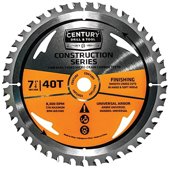 Century Drill & Tool 13206 Construction Circular Saw Blade, 7-1/4" 40TCentury Drill Tool 13206 7 25 in 40T Contractor Card Circular Saw BladeCentury Drill Tool 10242 12 in x 72T Contractor MiterCentury Drill Tool 10216 Circular Saw Blade 10 in x 60T FinishingCentury Drill Tool 13201 7 25 in x 24T Contractor Card