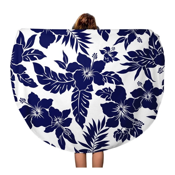 Hero image 0 of SIDONKU 60 inch Round Beach Towel Blanket Simple Tropical Flower Pattern Drawing Hibiscus Leaf Floral Aloha Travel Circle Circular Towels Mat Tapestry Beach Throw, 0 of 2