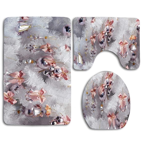 Hero image 0 of PUDMAD Christmas Bell 3 Piece Bathroom Rugs Set Bath Rug Contour Mat and Toilet Lid Cover, 0 of 2