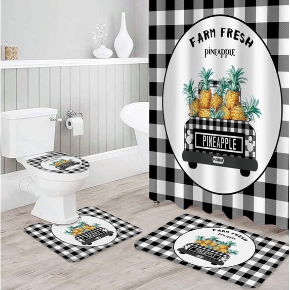 Hero image 0 of FMSHPON Farm Fresh Pineapple 4 Piece Bathroom Set Shower Curtain Bath Rug Contour Mat and Toilet Lid Cover, 0 of 6