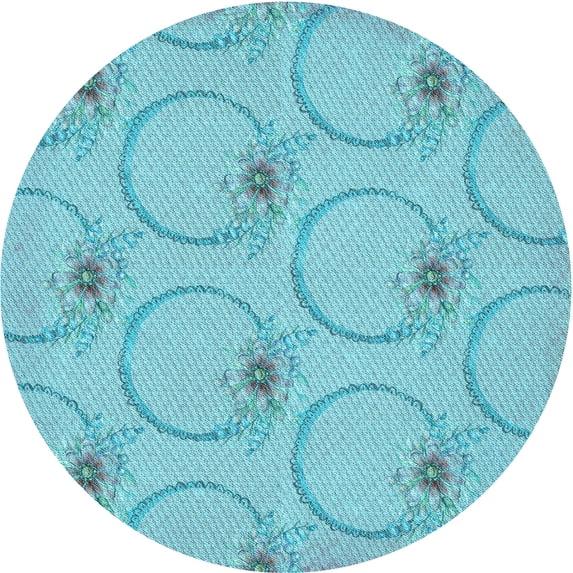 Ahgly Company Machine Washable Indoor Round Transitional Macaw Blue Green Area Rugs, 7' Round