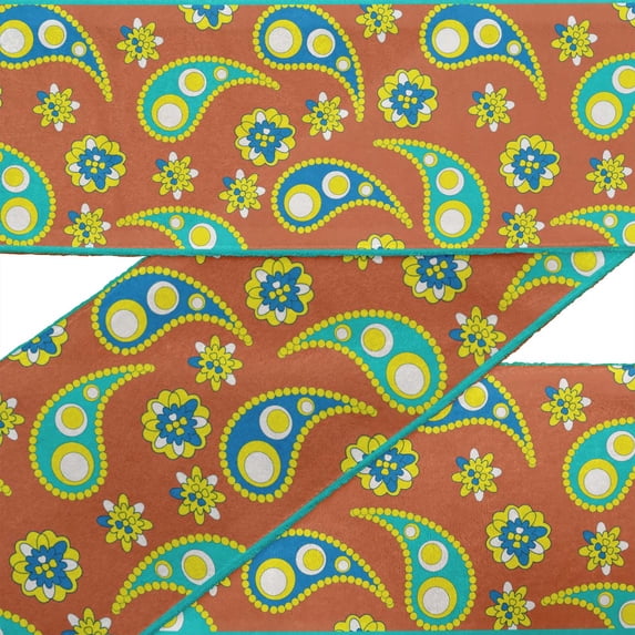 Hero image 0 of IBA Indianbeautifulart Orange Floral & Paisley Printed Ribbon Trim By 9 Yard Dupion Fabric Laces For Crafts Sewing Accessories 4 Inches, 0 of 1