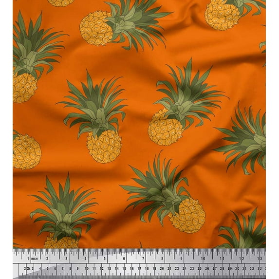 Hero image 0 of Soimoi Orange Velvet Fabric Pine Fruits Printed Fabric 1 Yard 58 Inch Wide, 0 of 3