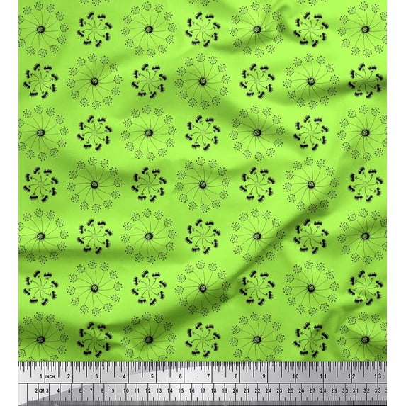Soimoi Green Cotton Duck Fabric Black Sketch Floral Decor Fabric Printed Yard 42 Inch Wide