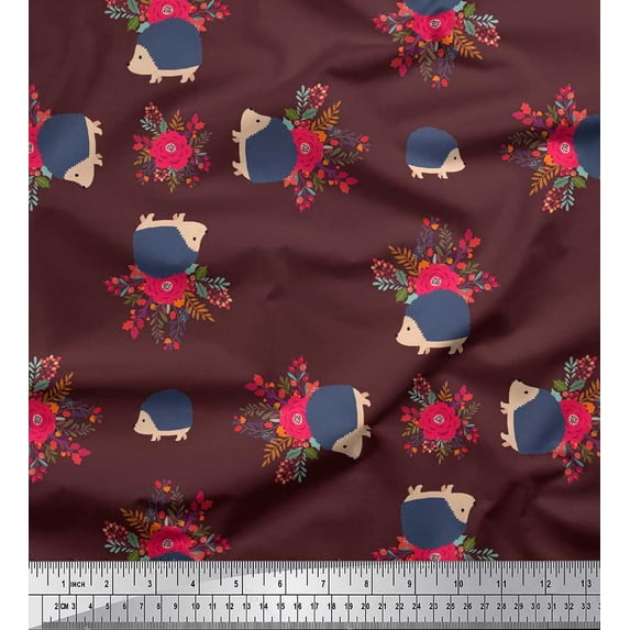 Hero image 0 of Soimoi Cotton Voile Fabric Leaves,Floral & Hedgehog Kids Print Fabric by The Yard 56 Inch Wide, 0 of 1