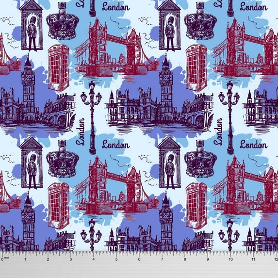 Hero image 0 of Soimoi Georgette Sewing Fabric 44 Inches Wide London Theme Architectural Print Material By The Yard - Purple, 0 of 1
