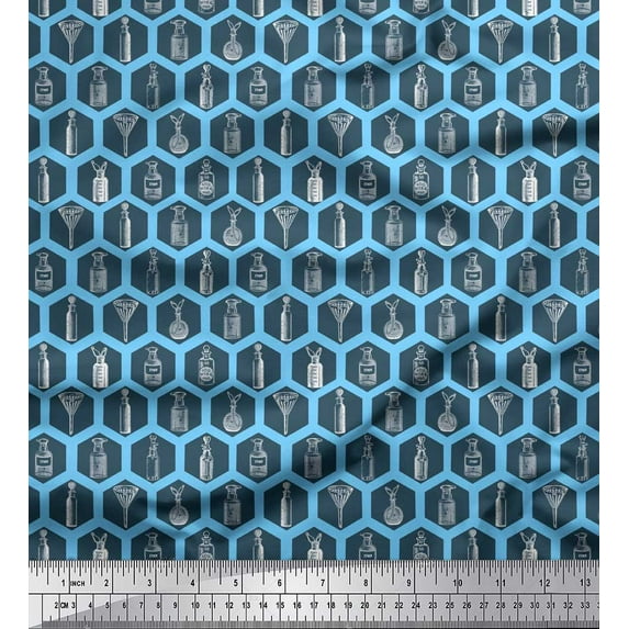 Soimoi Blue Silk Fabric Honeycomb Design & Designer Bottle Print Sewing Fabric Yard 42 Inch Wide