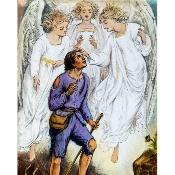 Magic Lantern Hand Coloured Slide Circa 1900. A Pilgrim's Progress By John Bunyan. Christian's Burden Is Lost Angels Blessing by John Short / Design Pics (28 x 34)Magic Lantern Hand Coloured Slide Circa 1900 Pilgrim s Progress John Bunyan Christian s Burden Lost Angels Blessing John Short Design Pics 28 x 34Magic Lantern Hand Coloured Slide Circa 1900 A Pilgrim s Progress By John Bunyan Christian s Burden Is Lost Angels Blessing Short Design Pics 14 x 17