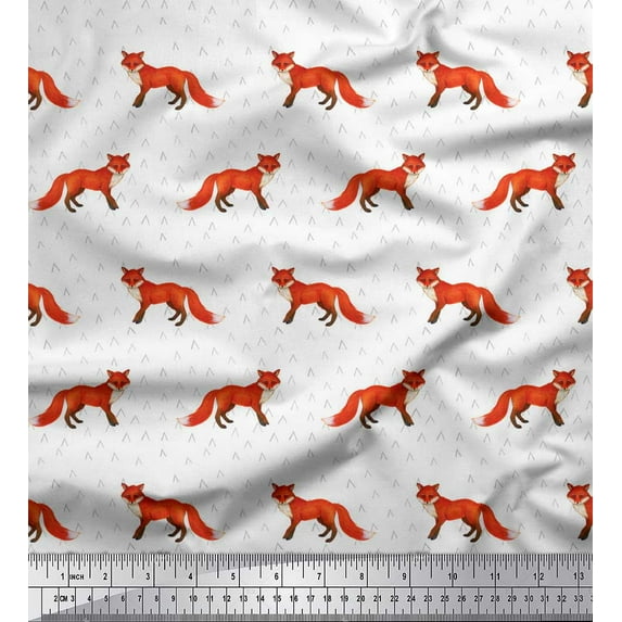 Soimoi White polyester Crepe Fabric Fox Animal Decor Fabric Printed Yard 52 Inch Wide
