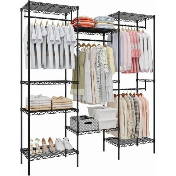 Hero image 0 of Historyli Metal Freestanding Clothing Organizer,Clothing Rack Heavy Duty Clothes Rack with 8 Shelves & 4 Hang Rods,Adjustable Closet Rack for Hanging Clothes,68.9" L x 15.7" W x 76.4" H,Black, 0 of 7