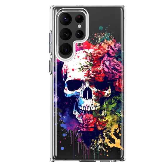 Hero image 0 of MUNDAZE Samsung Galaxy S23 Ultra Shockproof Clear Hybrid Protective Phone Case Fantasy Skull Red Purple Roses Cover, 0 of 5