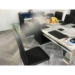 Upholstered in soft faux leather and finished with diamond pattern stitching the Milan dining chairs would seamlessly fit in with most dining spaces, whilst not compromising on either style or comfort. The stylish chrome leg and hatched leather combination gives this chair a contemporary edge, whilst it's simple design allows for practical everyday usage. The chairs are made from high quality faux leather and are ergonomically designed for maximum comfort and support. They feature soft touch faux leather with a deep foam seat cushion and plastic feet to protect the floor from any damage! At an unbeatable price you cannot go wrong with these chairs!