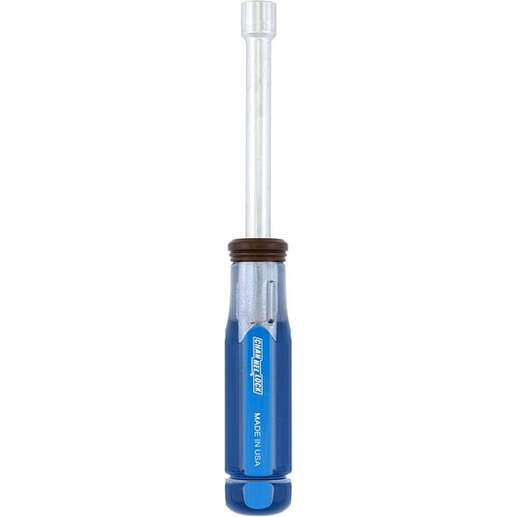 The Channellock 1/4-Inch X 3-1/4-Inch nut driver is designed for durability and performance, making it a reliable tool for both professionals and DIY enthusiasts. Manufactured in the United States, this nut driver features a nickel chrome finish that provides exceptional corrosion resistance, ensuring long-lasting use even in demanding environments. The hollow shaft design allows for easy clearance of long threaded applications, while the heat-treated alloy steel shaft delivers strength and reliability during heavy-duty tasks. The high torque acetate handle offers superior durability and solvent resistance, making it comfortable to use and easy to maintain. For added convenience, the handle is color coded, allowing for quick and easy size identification when working on various projects. This Channellock nut driver is crafted from quality steel and meets customer requirements for performance and dependability. Ideal for a range of fastening and loosening tasks, it is a practical addition to any toolbox, providing the precision and resilience needed for everyday repairs and installations.