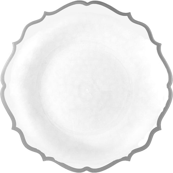 244.5 out of 5 Stars. 24 reviewsSave withShipping, arrives in 3+ days13 Inch Clear Round Charger Plate with Gold Rim – Elegant, Disposable, Decorative Round Plastic Charger for Dinner Parties, Events, & Holidays – Durable, & Disposable Table Setting for Plates (4) $11.95