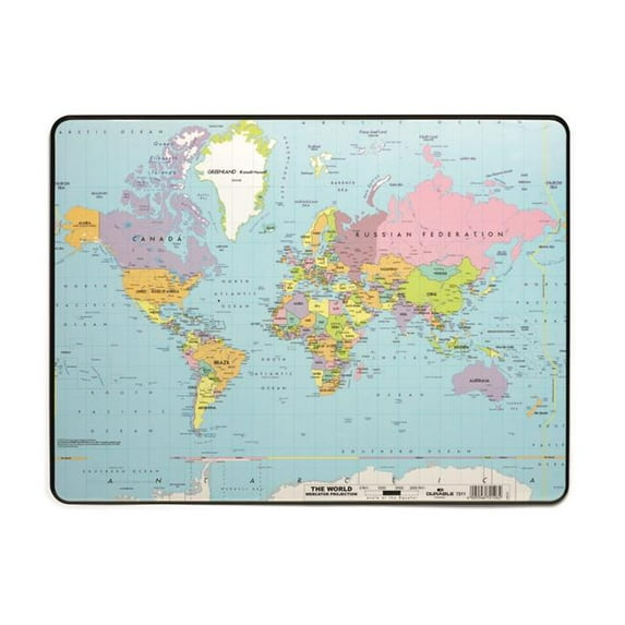 Durable Office Products 721119 20.75 x 15.75 in. Desk Pad with World Map, Transparent