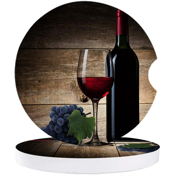 Hero image 0 of FMSHPON Red Bottle Glass and Grapes on Wood Plank Set of 6 Car Coaster for Drinks, Absorbent Ceramic Stone Coasters Cup Mat with Cork Base for Home Kitchen Room Coffee Table Bar Decor, 0 of 5