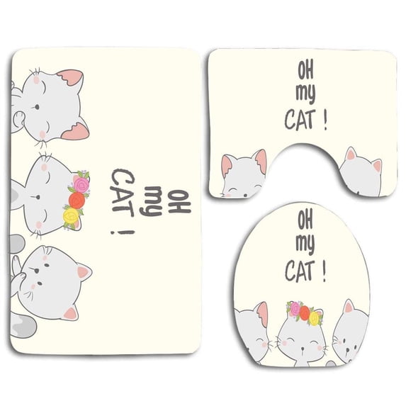 Hero image 0 of PUDMAD Cute Cat Lovely 3 Piece Bathroom Rugs Set Bath Rug Contour Mat and Toilet Lid Cover, 0 of 2