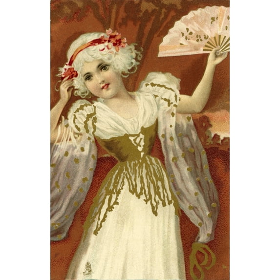 Hero image 0 of Girl In White And Gold With A Pink Fan Poster Print By Mary Evans Picture Librarypeter & Dawn Cope Collection, 0 of 4