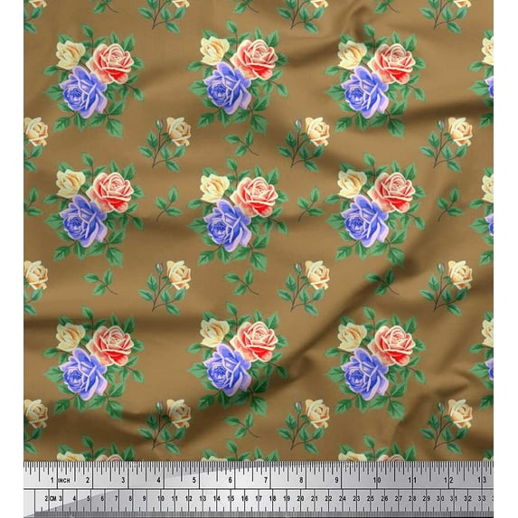 Hero image 0 of Soimoi Poly Georgette Fabric Leaves, & Rose Floral Print Fabric by The Yard 42 Inch Wide, 0 of 1