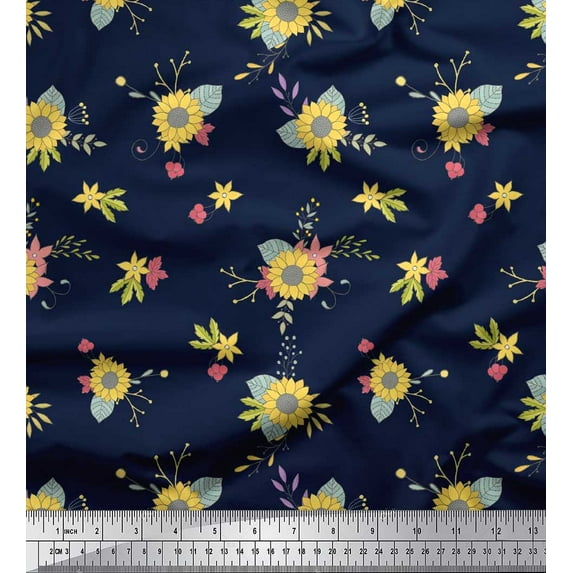 Hero image 0 of Soimoi Blue Cotton Duck Fabric Leaves & Sunflower Floral Print Fabric by Yard 56 Inch Wide, 0 of 3